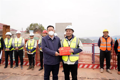 1月21日,正值除夕佳節(jié),于都縣委書記黃法一行來到同濟(jì)建管承攬監(jiān)理的紅色文化展覽培訓(xùn)基地及配套設(shè)施建設(shè)項(xiàng)目(勝利大橋),走訪慰問春節(jié)期間堅守項(xiàng)目一線的建設(shè)者,向大家致以節(jié)日問候和新春祝福,為一線工人和參建各方送去慰問金。