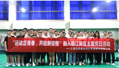為加快公司融入贛江新區(qū)步伐,增強員工身體素質(zhì),激發(fā)員工昂揚斗志和蓬勃朝氣,不斷展現(xiàn)新活力、新氣象、新作為,5月28日,同濟建管在贛江新區(qū)儒樂湖新城公共文體中心組織開展“運動正青春,開啟新征程”融入贛江新區(qū)主題黨日活動,公司機關(guān)人員及項目人員共計80余人參加。