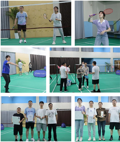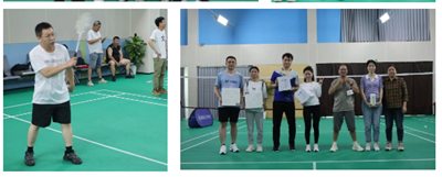 上午羽毛球比賽火熱開展,參賽選手個個精神抖擻、意氣風(fēng)發(fā)、斗志滿滿,只見球在空著來回飛舞,選手們時而下蹲救球,時而躍起扣殺,將各類球技展現(xiàn)得淋漓盡致,現(xiàn)場歡呼聲、加油聲此起彼伏。經(jīng)過激烈角逐,何聲康獲得男單第一名,陳芬獲得女單第一名,何濤、鐘碧瓊獲得混雙第一名。