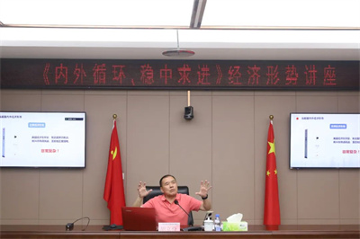 會后,贛萍商會會長胡立儉作了題為《內(nèi)外循環(huán) 穩(wěn)中求進(jìn)》的經(jīng)濟(jì)形勢講座。他從當(dāng)前國內(nèi)外經(jīng)濟(jì)形勢切入,深刻剖析了當(dāng)前中國內(nèi)循環(huán)(以保促穩(wěn),穩(wěn)中求進(jìn))和外循環(huán)(“一帶一路”倡議)相互促進(jìn)的新發(fā)展格局,闡釋了“現(xiàn)階段怎么做”的現(xiàn)實落腳點,并提出“與不確定性共存、有目標(biāo)地實現(xiàn)多樣化、從小處著手、保留選擇權(quán)、樂觀對待不確定性、不要害怕匱乏、把握當(dāng)下”等七條對策。最后,他用“四格”成就人生(即格局要大、格調(diào)要高、格物要深、格斗要猛)與“四住”成就事業(yè)(即把住方向、鎖住底線、抓住機(jī)會、管住關(guān)鍵)與眾人共勉。