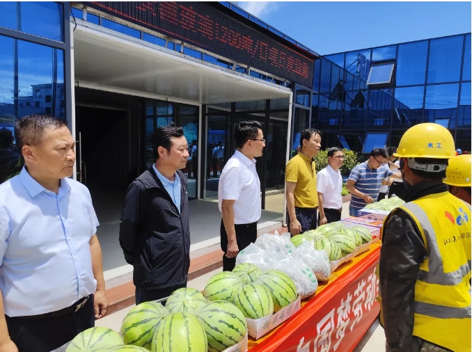 正值各項(xiàng)目“戰(zhàn)酷暑、保目標(biāo)”的盛夏時(shí)節(jié),葉榮來(lái)到玻璃項(xiàng)目現(xiàn)場(chǎng),向一線建設(shè)者們致以親切問(wèn)候,并送去西瓜、飲料等夏日慰問(wèn),叮囑大家注意防暑降溫、勞逸結(jié)合。