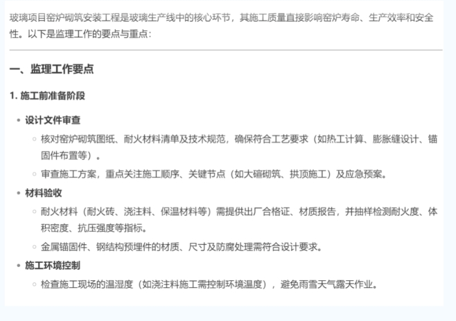 璃項目窯爐砌筑安裝工程監(jiān)理要點、重點
