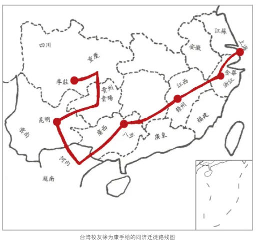 臺灣校友徐為康手繪的同濟(jì)遷徙路線圖