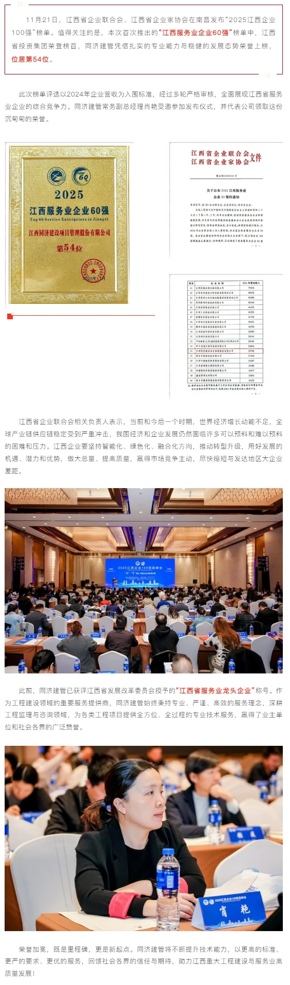 祝賀!同濟(jì)建管上榜江西服務(wù)業(yè)企業(yè)60強(qiáng)